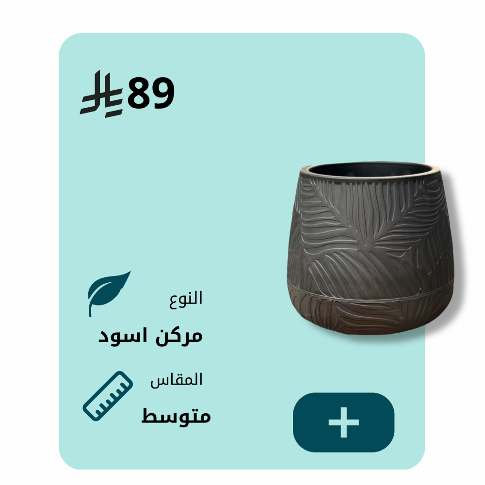 مركن زرع اسود منقوش بتصميم ديكوري فاخر متوسط الحجم